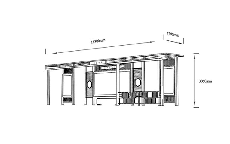產(chǎn)品外觀 / PRODUCT DETAILS 產(chǎn)品信息 / PRODUCT INFO 【產(chǎn)品名稱】:城市品位候車亭PW8 【產(chǎn)品系列】:城市品位候車亭 【產(chǎn)品型號】:PW8 【產(chǎn)品規(guī)格】:長10800mm 寬1700mm 高2900mm 【產(chǎn)品材質(zhì)】:熱鍍鋅鋼板 【使用年限】:10-15年 【詳情致電】:181-5189-0417、157-5170-8886 備注:產(chǎn)品可根據(jù)用戶需求選用材質(zhì)、顏色及配件,個(gè)性化定制。 1、表面采用靜電噴塑(氟碳烤漆/搪瓷處理) 2、頂棚采用100*100*1.5mm、100*150*2mm鍍鋅管,3mm鍍鋅板激光切割件、1.5mm鍍鋅板焊接骨架,鋪1mm鍍鋅板(10mm陽光板) 3、立柱采用150*150*3mm鍍鋅管 4、箱體采用1.5mm鍍鋅板折彎焊接成型,門框采用全玻鋁合金型材,視窗采用6mm鋼化玻璃 5、照明電器采用LED燈粒 產(chǎn)品尺寸 / PRODUCT SIZE 關(guān)于輝盛 / 為社會分擔(dān)責(zé)任,為客戶創(chuàng)造價(jià)值 宿遷輝盛廣告設(shè)備有限公司是一家集設(shè)計(jì)、研發(fā)、生產(chǎn)為一體的城市公共設(shè)施生產(chǎn)型企業(yè)。主要產(chǎn)品有:候車公交亭、公交站臺、閱報(bào)欄、路名牌、垃圾箱、燈箱等市政設(shè)施系列產(chǎn)品和工程配套設(shè)施系列產(chǎn)品,現(xiàn)有高級技師30多人,高級職稱設(shè)計(jì)人員10人,是一家具有自主開發(fā)和設(shè)計(jì)能力的以公交亭、智能公交為主導(dǎo)的綜合性城市公共設(shè)施制造企業(yè)。為了進(jìn)一步改善生產(chǎn)工藝,提高產(chǎn)品質(zhì)量,公司引進(jìn)了先進(jìn)生產(chǎn)設(shè)備,包括立臥式加工中心,工業(yè)涂裝流水線,CNC車床,線切割機(jī),大型數(shù)控板機(jī),數(shù)控折邊機(jī),數(shù)控沖孔機(jī)床,大型折彎機(jī)等。公司還專門成立了產(chǎn)品研發(fā)部門,現(xiàn)每年自主開發(fā)或應(yīng)客戶要求設(shè)計(jì)推出多款新產(chǎn)品。 榮譽(yù)資質(zhì) / ENTERPRISE HONOR