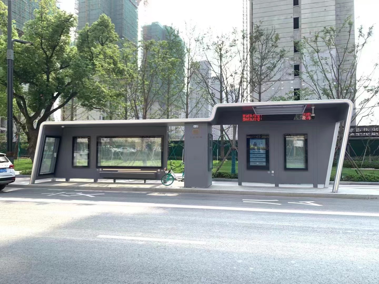 浙江杭州新款智能候車亭安裝完畢