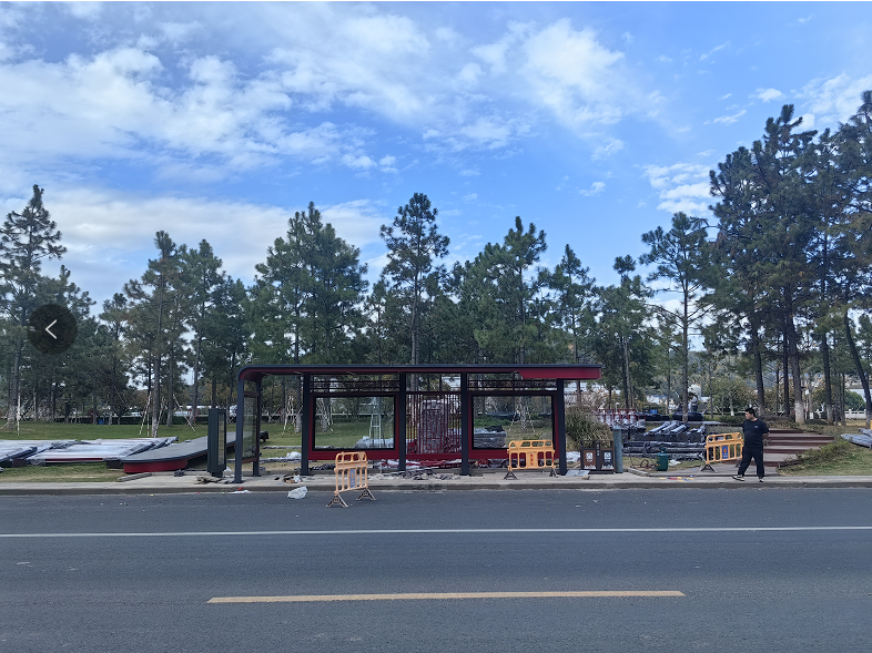 一批紅黑經(jīng)典款候車亭安裝完畢,