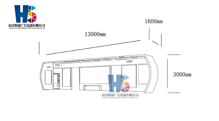 產(chǎn)品外觀 / PRODUCT DETAILS 產(chǎn)品信息 / PRODUCT INFO 【產(chǎn)品名稱】:新款候車亭HS40 【產(chǎn)品系列】:新款候車亭 【產(chǎn)品型號】:HS40 【產(chǎn)品規(guī)格】:長13000mm 寬1600mm 高3000mm 【產(chǎn)品材質(zhì)】:熱鍍鋅鋼板 【使用年限】:10-15年 【詳情致電】:181-5189-0417、157-5170-8886 備注:產(chǎn)品可根據(jù)用戶需求選用材質(zhì)、顏色及配件,個性化定制。 1、表面采用靜電噴塑(氟碳烤漆/搪瓷處理) 2、頂棚采用100*100*1.5mm、100*150*2mm鍍鋅管,3mm鍍鋅板激光切割件、1.5mm鍍鋅板焊接骨架,鋪1mm鍍鋅板(10mm陽光板) 3、立柱采用150*150*3mm鍍鋅管 4、箱體采用1.5mm鍍鋅板折彎焊接成型,門框采用全玻鋁合金型材,視窗采用6mm鋼化玻璃 5、照明電器采用LED燈粒 產(chǎn)品尺寸 / PRODUCT SIZE 關(guān)于輝盛 / 為社會分擔責任,為客戶創(chuàng)造價值 宿遷輝盛廣告設(shè)備有限公司是一家集設(shè)計、研發(fā)、生產(chǎn)為一體的城市公共設(shè)施生產(chǎn)型企業(yè)。主要產(chǎn)品有:候車公交亭、公交站臺、閱報欄、路名牌、垃圾箱、燈箱等市政設(shè)施系列產(chǎn)品和工程配套設(shè)施系列產(chǎn)品,現(xiàn)有高級技師30多人,高級職稱設(shè)計人員10人,是一家具有自主開發(fā)和設(shè)計能力的以公交亭、智能公交為主導的綜合性城市公共設(shè)施制造企業(yè)。為了進一步改善生產(chǎn)工藝,提高產(chǎn)品質(zhì)量,公司引進了先進生產(chǎn)設(shè)備,包括立臥式加工中心,工業(yè)涂裝流水線,CNC車床,線切割機,大型數(shù)控板機,數(shù)控折邊機,數(shù)控沖孔機床,大型折彎機等。公司還專門成立了產(chǎn)品研發(fā)部門,現(xiàn)每年自主開發(fā)或應客戶要求設(shè)計推出多款新產(chǎn)品。 榮譽資質(zhì) / ENTERPRISE HONOR